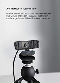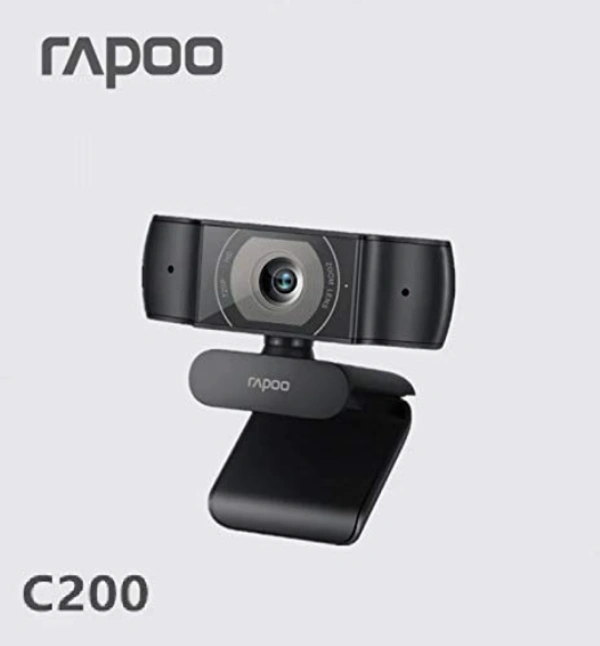 Rapoo C200 720p HD USB Black, 360° Horizontal, 100° Super Wide-Angle Webcam with Microphone for Live Broadcast Video Calling Conference